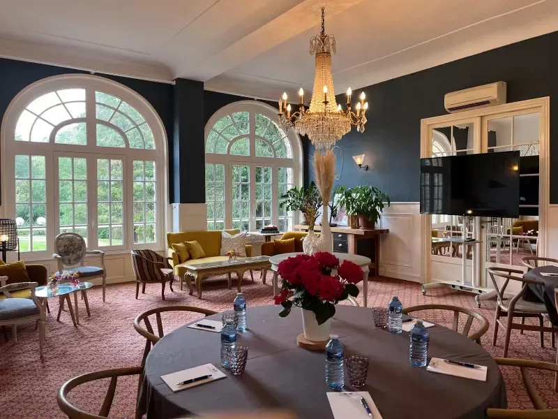 Salon idéal pour vos comités de direction, réunions ou dîners protocolaires avec une belle vue sur le parc et sur la fontaine.